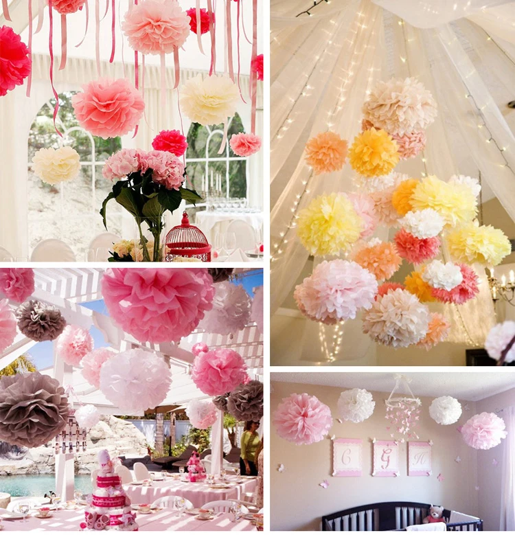 10pcs Hot selling 6" (15cm) Wedding Decorative Props Tissue Paper Pompoms Pom Poms Balls Wedding Party Home Decoration